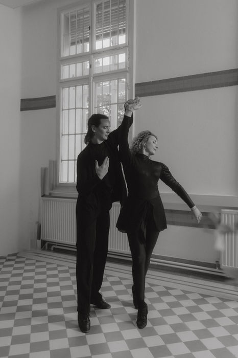 This gaze scrutinises every body, determining whether they perform their gender well enough. Dancers' clothes, gestures, choreography and behaviour are all examined to ensure they fit into the correct binary gender category. Dancers face discrimination if their movements do not conform to the gender binary, and movement mechanics are taught separately according to whether the dancer is male or female (we addressed this in our third tool). Federations allow either men or women to compete, thereby excluding trans and non-binary people.⁸ The gallery below features a counter-example: The couple constellation doesn't feature a cis man dancing with a cis woman, which makes this constellation illegitimate for the DanceSport world.